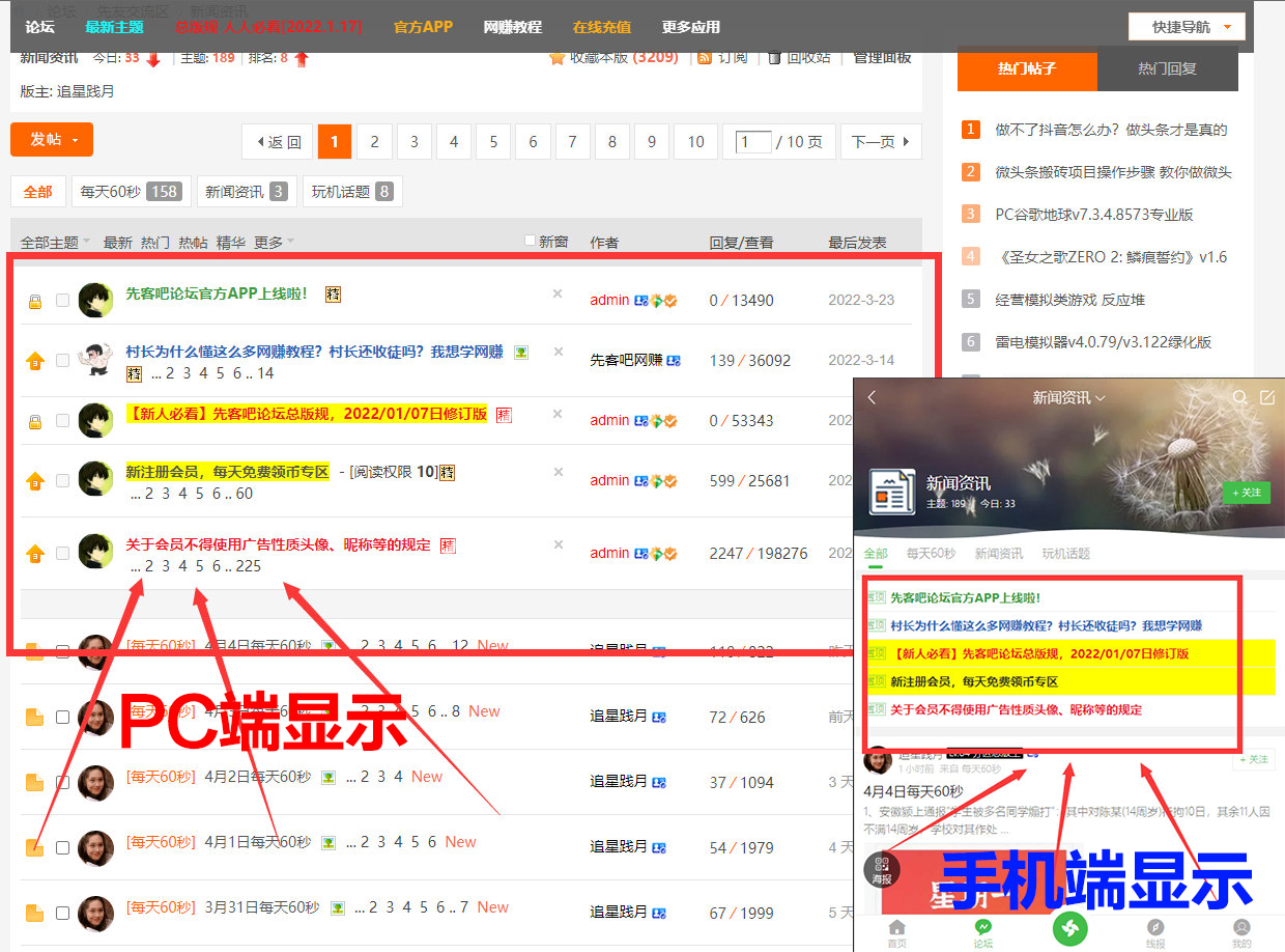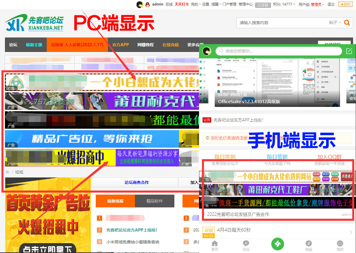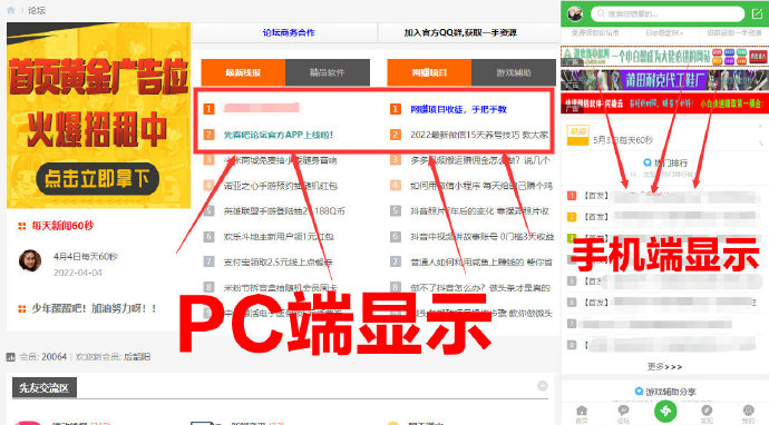 - 论坛所有板块置顶帖(双端显示) 点击预览PC+手机端广告样式